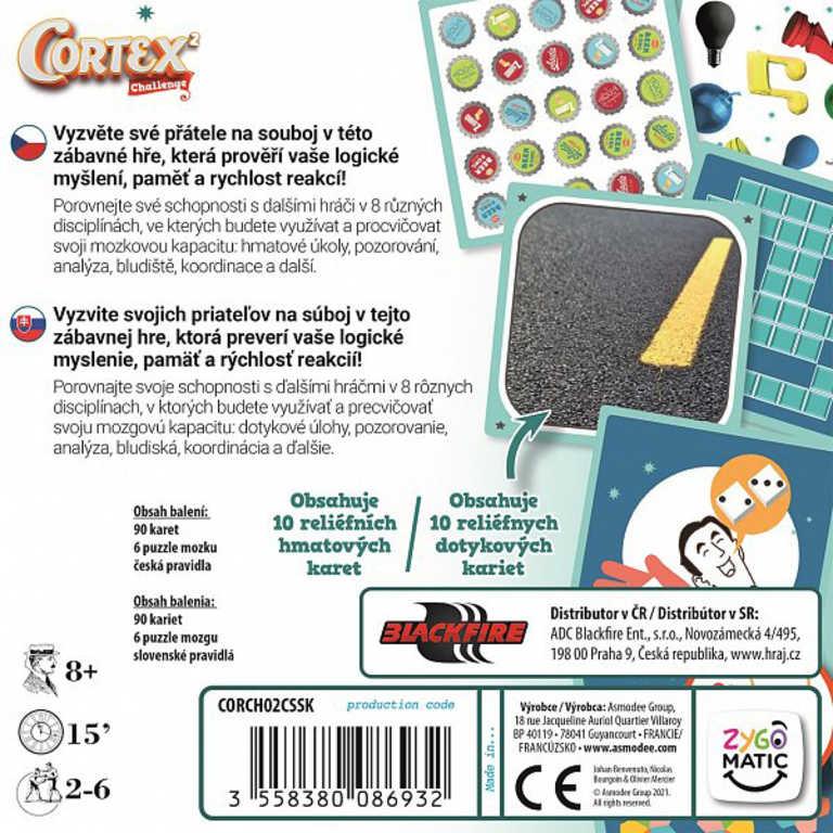 Obsah balení: 90 karet (74 karet s úkoly, 6 hmatových karet výzev, 10 reliéfních hmatových karet), 6 puzzle mozku (24 dílků), česká a slovenská pravidla