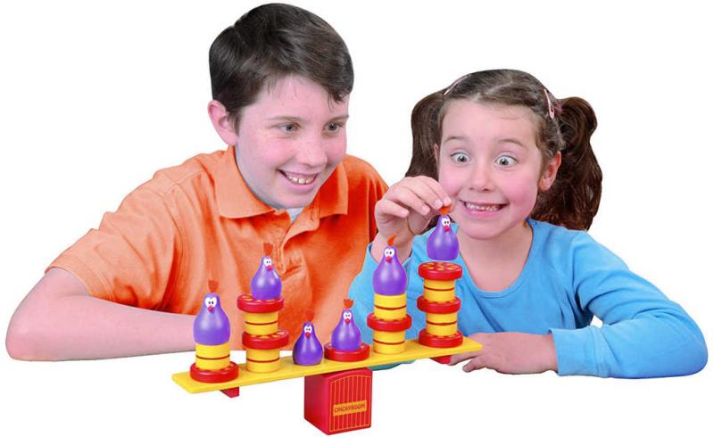 se začne houpat! Hráči mají za úkol sesbírat tolik slepiček, stohů sena a kol, kolik zvládnou předtím, než rozhoupaný kurník přepadne. Hra o rovnováze, smíchu a zábavě, při které padají slepičky!