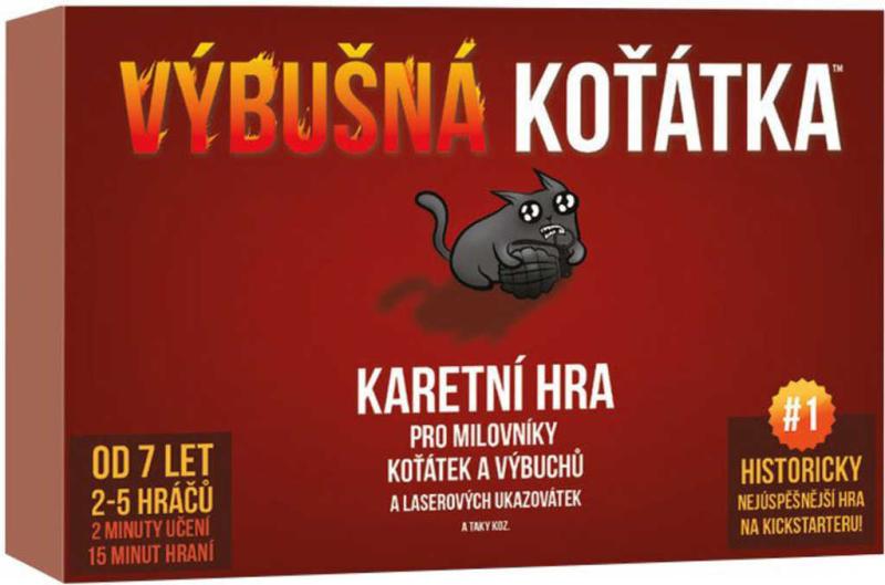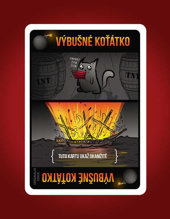 Výbušná koťátka je kočičí verze Ruské rulety. Hráči se zde střídají v tazích během kterých si dobírají karty, dokud takto někdo neobdrží vybuchující koťátko čímž prohraje hru. Balíček karet se však skládá z