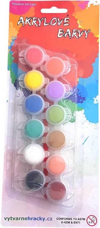 Akrylové permanentní barvy 12 barev se štětcem na keramiku, sklo a kameny