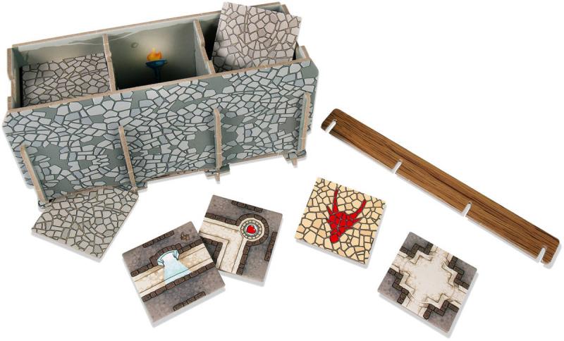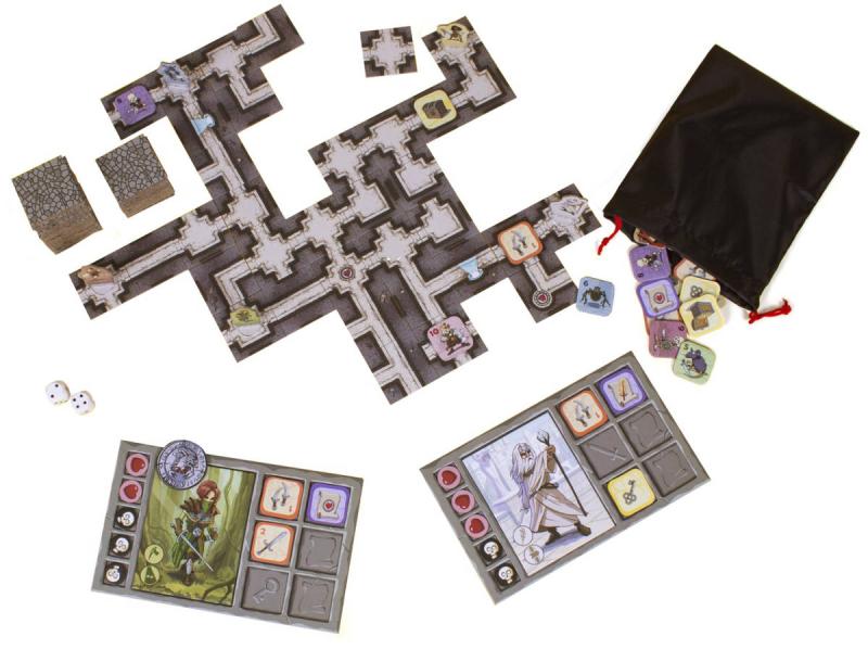 Balení obsahuje: 80 destiček katakomb, 6 kartonových figurek hrdinů se stojánky, 6 karet hrdinů, 5 desek inventáře, 25 žetonů životů, kartonovou věž na dílky, plastový insert, neprůhledný sáček na nestvůry a poklady, 43 žetonů nestvůr, 10 žetonů truhel, 2 hrací kostky, žeton prokletí, pravidla hry (v češtině, slovenštině, polštině a rumunštině)