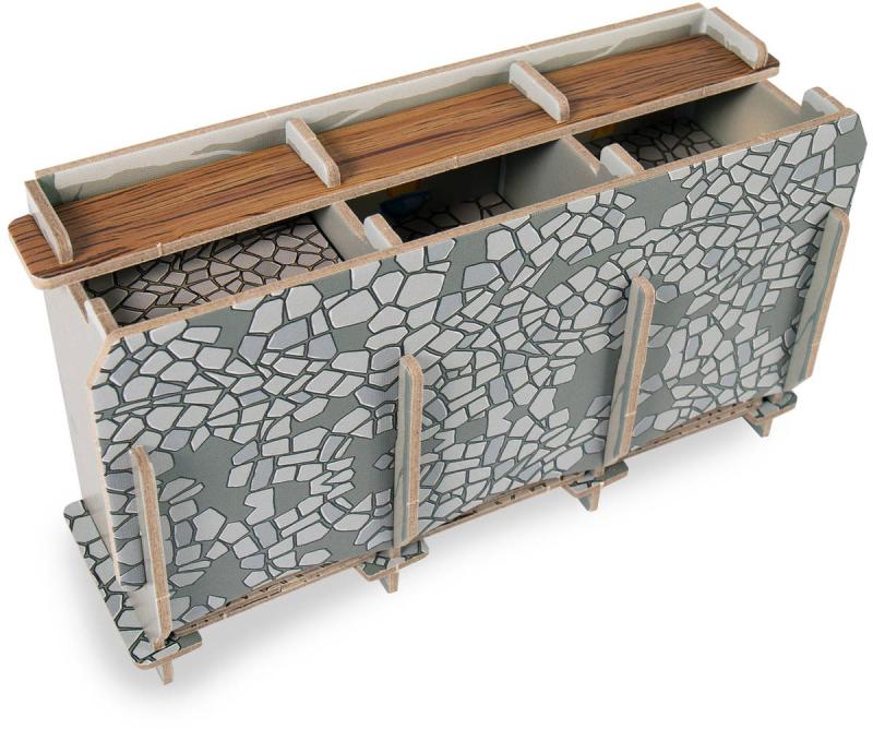 Druhé vydání hry Karak má novou čtvercovou krabici, plastový insert a kartonovou věž na dílky.