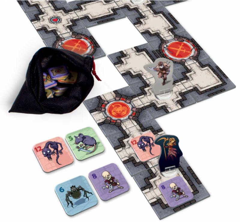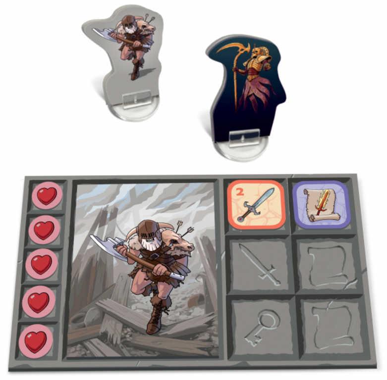 Obsah balení: 18 destiček katakomb, 5 karet hrdinů, 5 figurek hrdinů, 5 stojánků, 8 žetonů nestvůr, pravidla