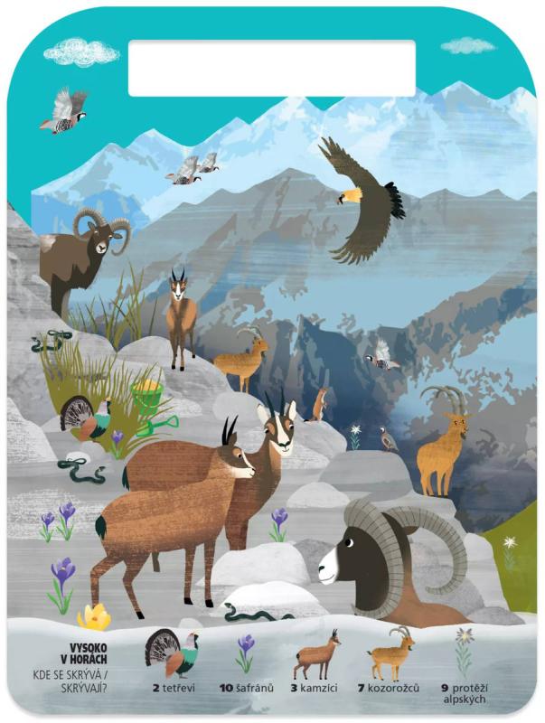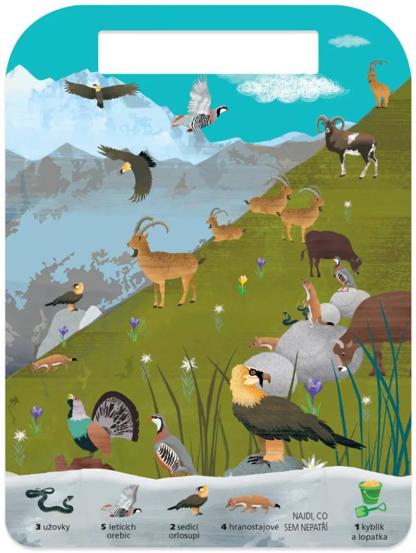 ALBI hra Hledej a najdi: Zvířátka z hor, z edice Kvído. Součástí mazatelný fix.Najděte na každé stránce obrázky, které jsou dole zobrazené. Některé jsou tam dokonce vícekrát a všude se skrývá i nějaký ten vetřelec. Najdete je všechny? Pokud máte už vyplněno, můžete vše smazat a zkusit řešit znovu. Do sešitu se totiž píše fixem, který lze pomocí papírového ubrousku opět vymazat.