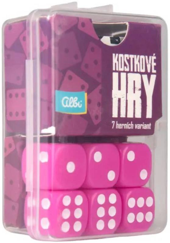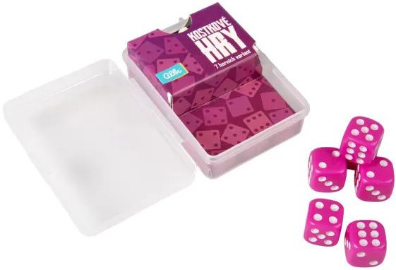 ALBI - Růžové (fialové) kostkové hry - Tato mini sada kostkových her obsahuje 7 různých herních variant. V uzavíratelném cestovním balení najdete podrobný návod, jak si hry zahrát.