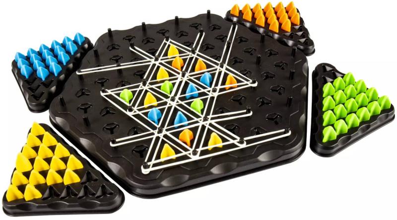 Napínejte gumičky mezi sloupky a tvořte trojúhelníky dřív než ostatní. Každý tah může být rozhodující, každá gumička může být klíčová. Kdo zabere nejvíc území, vyhrává! Vyhrajte tím, že z gumiček vytvoříte trojúhelníky a obsadíte je svými kameny! Přidávejte gumičky přes sloupky, blokujte soupeře a tvořte strategické sítě. Hra končí, když už nelze vytvořit další trojúhelník – vyhrává ten, kdo obsadí nejvíce políček. Rychlá, chytrá a napínavá hra pro 2–4 hráče!