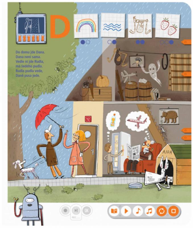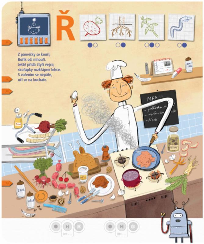 Interaktivní logopedická kniha. Knihou děti provází dvě postavičky, robot Robi a robotka Otka, které jim s mluvením pomáhají. Spolu s nimi se děti pokouší správně vyslovovat hlásky D, T, N, L, R a Ř. Kniha obsahuje hravé úkoly podněcující děti k mluvení, a tím i k procvičování problematických jevů. Nechybí ani básničky, písničky a napínavé komiksy. Knihu připravila speciální pedagožka, logopedka a autorka mnoha dětských knih Ester Stará. Kniha je namluvena Janou Holcovou, Petrem Pěknicem a dětmi z Dismanova rozhlasového dětského souboru. Kniha obsahuje přes 1500 zvuků a textů.