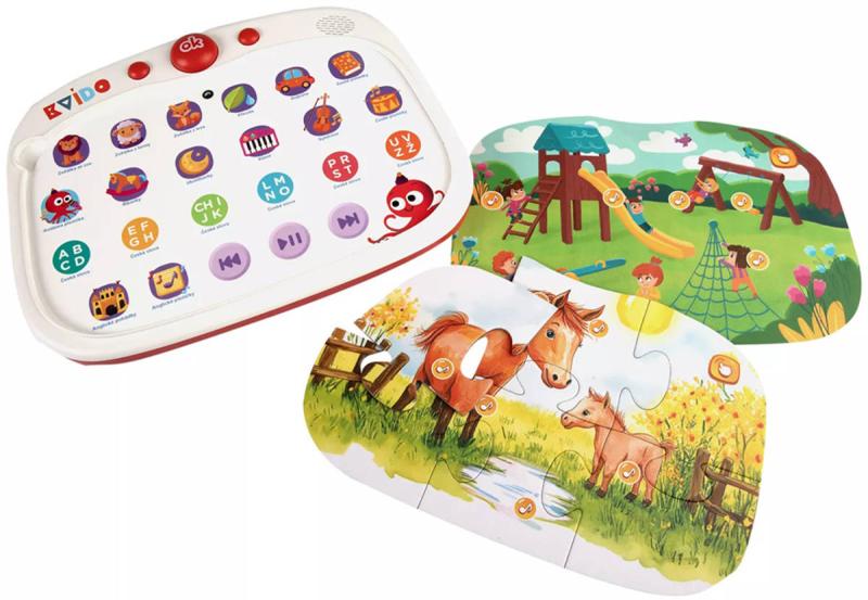 Albi mluvicí tablík - dotyková tabulka s kvízy z edice Kvído. Hračka na baterie, se zvukem. 300+ zvuků. Součáastí puzzle skládačka.Dotyková tabulka se zvuky a kvízy pro děti od 2 do 6 let. Obsahuje více než 300 zvuků, zábavné kvízy a podporuje rozvoj dítěte. Tablík, který je v českém jazyce, je doplněn o pohádky a písničky v angličtině.