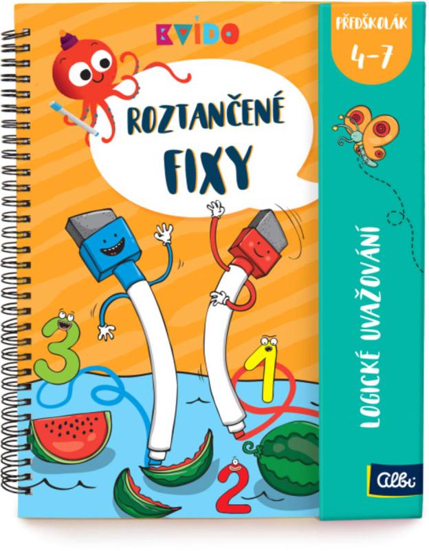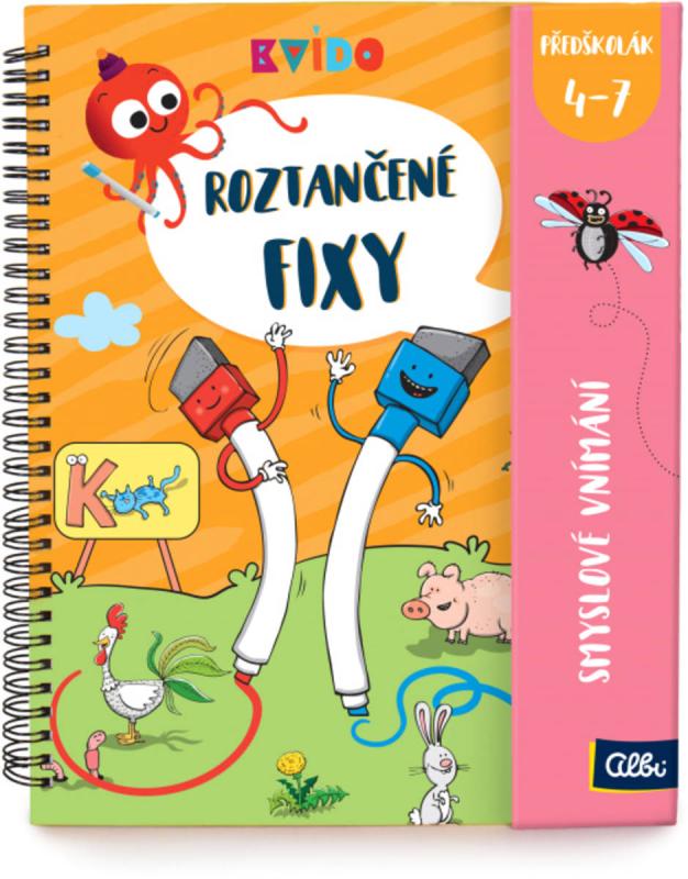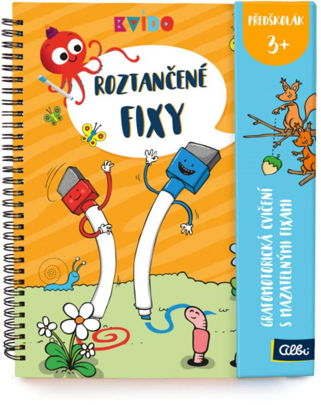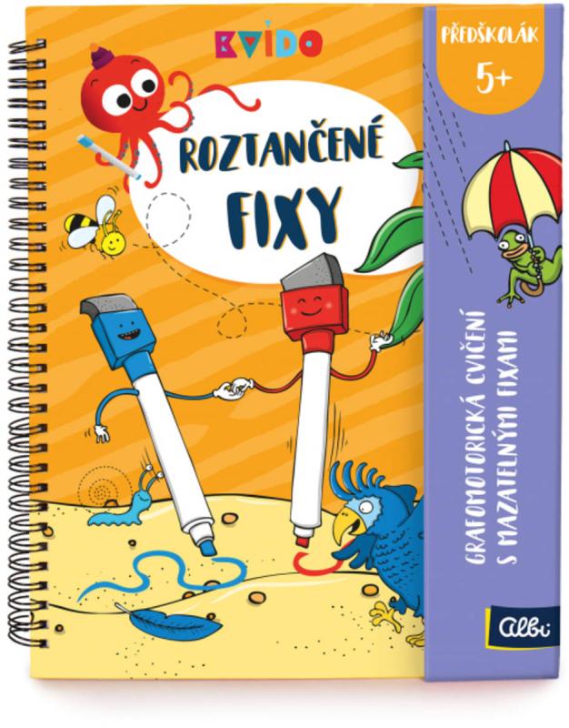 Roztančené fixy jsou interaktivní grafomotorické sešity plné obrázků a aktivit s příběhy 2 barevných fixek, které učí Kvída a předškolní děti kreslit a psát a rozvíjet přitom jemnou motoriku a zrakové vnímání. 6 variant provedení, dle aktuální dostupnosti.Díky mazatelným fixům můžou děti sešity vyplňovat opakovaně a procvičovat si tak úkoly znovu a znovu. Každý sešit Roztančené fixy má 50 stran plných úkolů pro děti předškolního věku. Kroužková vazba a zavírání na magnet je vhodné i do batůžku na cesty. Nově obsahují fixy všech vydání gumové delfínky, které napomáhají správnému úchopu.
