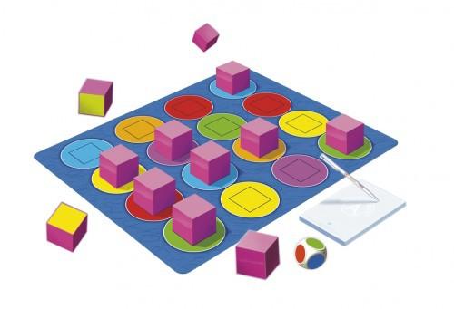 16 zvukových krychliček, herní plán, barevnou hrací kostku, poznámkový blok na body