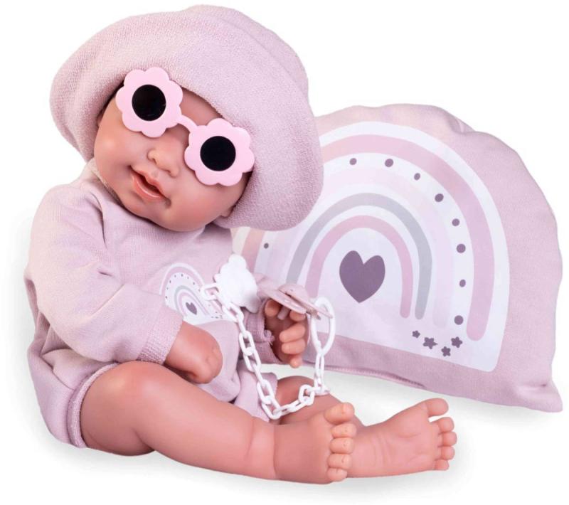 Obsah balení: panenka, oblečení, dudlík, sluneční brýle, polštářek