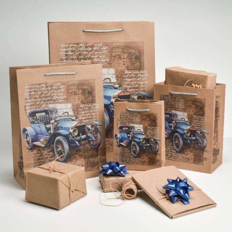 Argus Taška dárková auto veterán 31x42x12cm papírová natur Eco Friendly