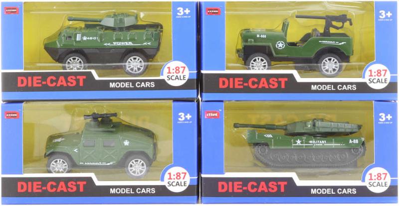 Auto army vojenské kovové 1:87 tank 4 druhy v krabici
