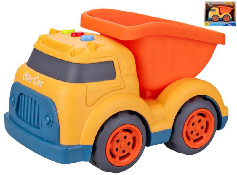 Plastové stavební nákladní baby autíčko na volný chod, vhodné pro nejmenší děti, zaoblené hrany, velikost 17cm. Auto sklápěčka na baterie, se světlem a zvukem.Autíčka - hračka, která fascinuje děti všech věkových kategorií. Od realistických modelů sportovních vozů až po různá vozítka, auta stimulují kreativitu a umožňují dětem prožít vlastní dobrodružství. Jsou ideální nejen pro zábavné hry, ale také pro rozvoj jemné motoriky, koordinace očí a rukou a prostorového myšlení. Hledáte-li dokonalý dárek pro malé motoristické nadšence, autíčka jsou jasnou volbou.