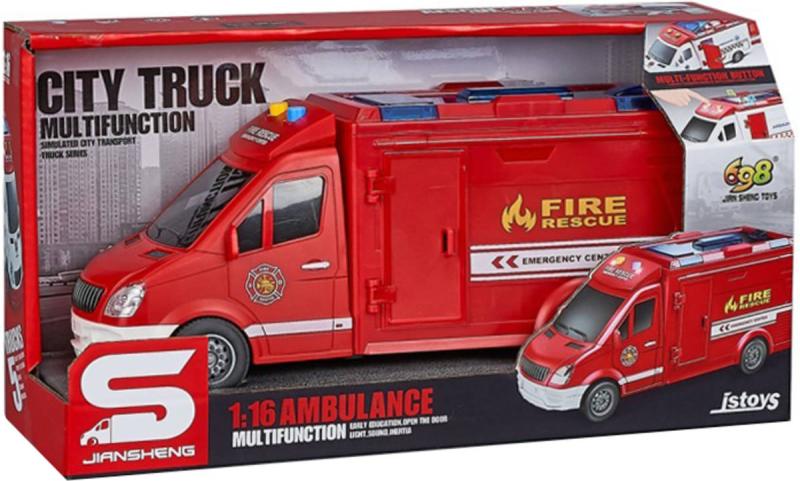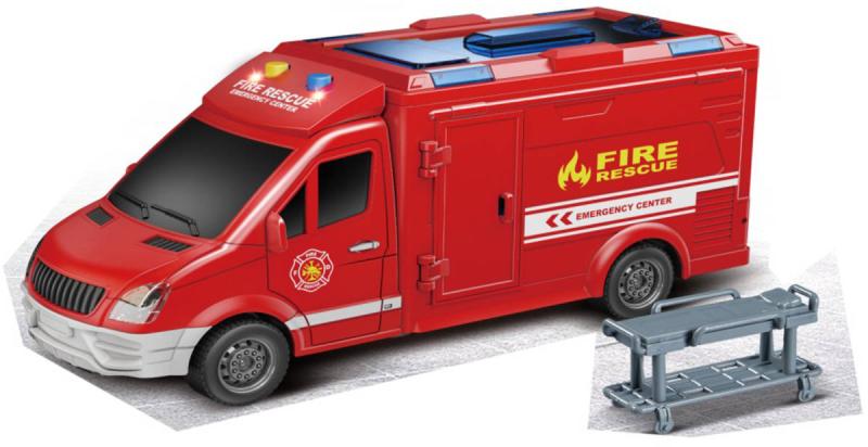Auto hasičská dodávka červená Hasiči na setrvačník na baterie Světlo Zvuk