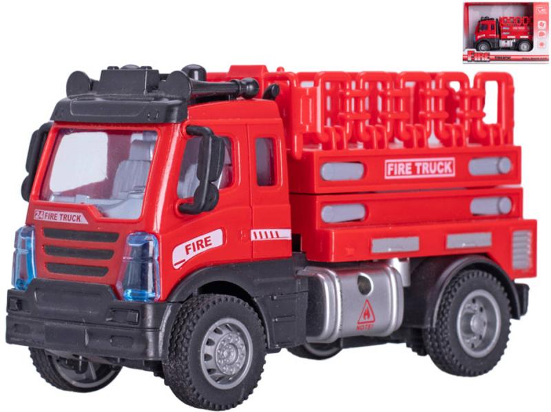 Plastové hasičské vozidlo, požární auto Hasiči se zvedací plošinou, s pohonem na zpětný chod, velikost 12cm.Autíčka - hračka, která fascinuje děti všech věkových kategorií. Od realistických modelů sportovních vozů až po různá vozítka, auta stimulují kreativitu a umožňují dětem prožít vlastní dobrodružství. Jsou ideální nejen pro zábavné hry, ale také pro rozvoj jemné motoriky, koordinace očí a rukou a prostorového myšlení. Hledáte-li dokonalý dárek pro malé motoristické nadšence, autíčka jsou jasnou volbou.