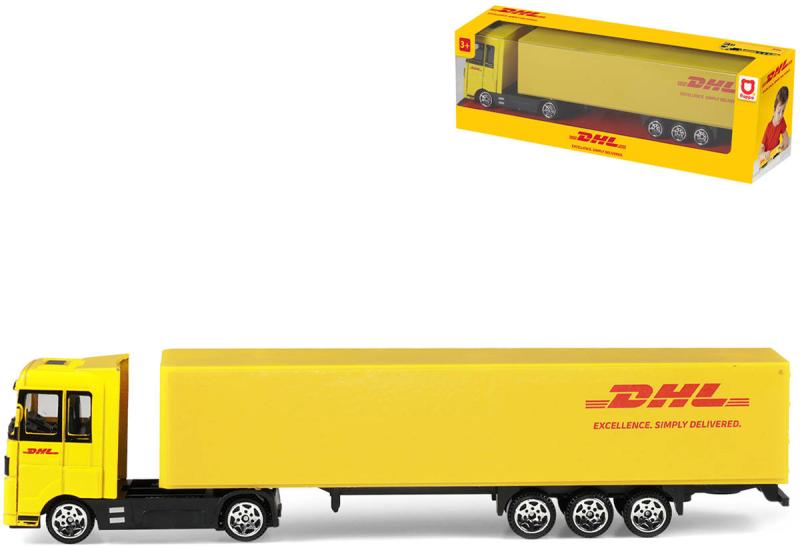 Auto kamion DHL Přeprava zásilek tahač kovový s návěsem volný chod