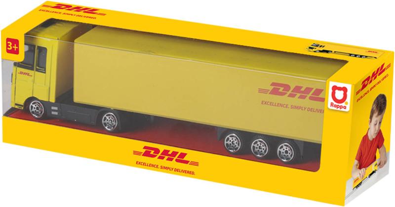 Pořiď si tento originální kamion s logem přepravní společnosti DHL a rozšiř si tímto svůj vozový park! Model kamionu 1:87 je vyroben z kovu, přívěs je vyroben z PVC. Model je dlouhý cca 20 cm a jezdí na volný chod. Tahle unikátní hračka nadchne všechny kluky, tak obohať svou sbírku o tento parádní kousek!