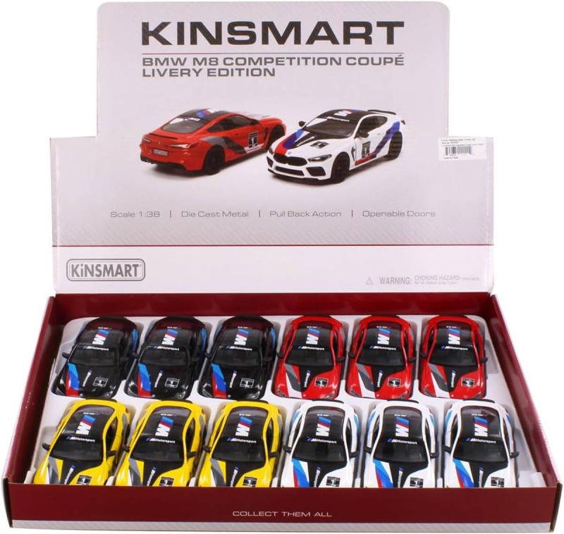 KINSMART KT5425: BMW M8 Competition Coupe Livery Edition - Věrný kovový model auta (detailní kopie) z kovu a plastu, zpětný chod, 4 barvy. Má otevírací dveře (dvířka jdou otevírat). Auto vyrobeno tlakovým litím z kovové slitiny v kombinaci s plastovými díly.Dětská autíčka, to jsou hračky, které potěší malé i velké. Autíčka (angličáky, modely aut) zajisté potěší nejen malé děti, ale i dospělé. Vždyť koho by tento krásný model auta nefascinoval?