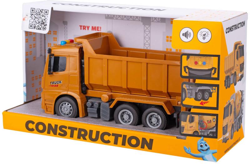 Nákladní auto sklápěčka s korbou, detailní model o velikosti 26cm, pogumovaná kola, pojistka proti vyklopení korby, funkční prvky. Hračka na baterie, se světlem a zvukem.Autíčka - hračka, která fascinuje děti všech věkových kategorií. Od realistických modelů sportovních vozů až po různá vozítka, auta stimulují kreativitu a umožňují dětem prožít vlastní dobrodružství. Jsou ideální nejen pro zábavné hry, ale také pro rozvoj jemné motoriky, koordinace očí a rukou a prostorového myšlení. Hledáte-li dokonalý dárek pro malé motoristické nadšence, autíčka jsou jasnou volbou.