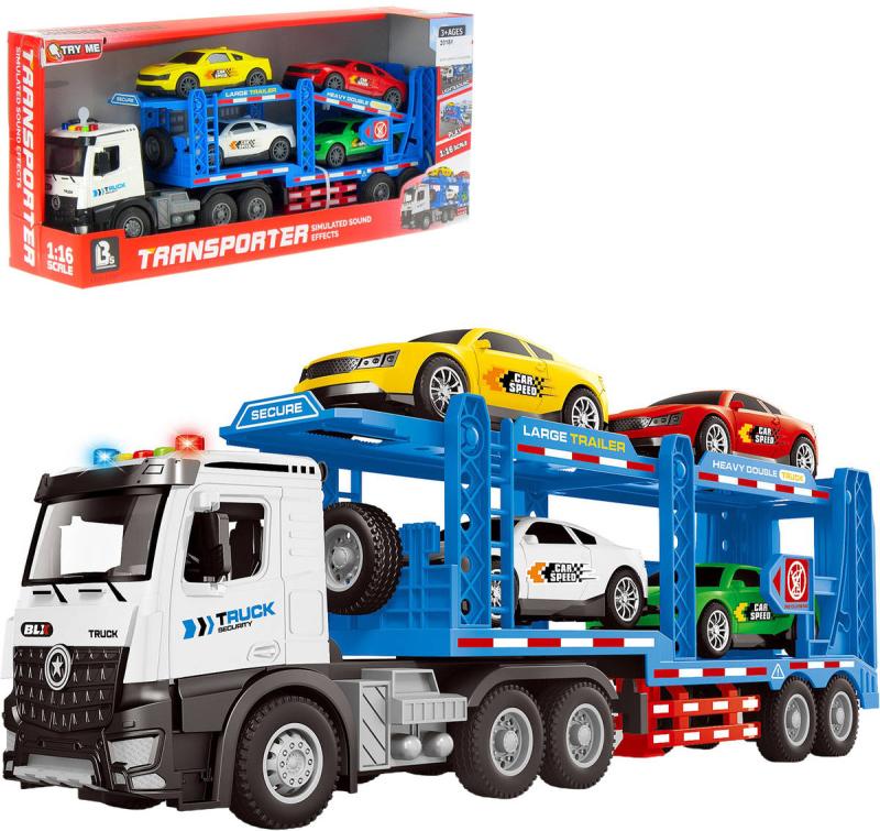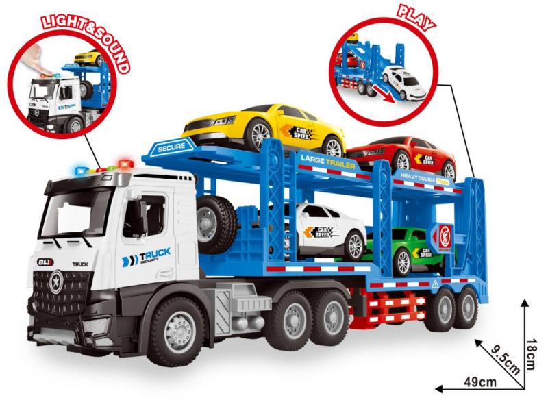 Odtahová služba. Plastový herní set, součástí tahač (odtahovka) a osobní automobil 4x. Otevírací dveře. Velikost odtahovky 49cm. Hračka na baterie, se světlem a zvukem.Autíčka - hračka, která fascinuje děti všech věkových kategorií. Od realistických modelů sportovních vozů až po různá vozítka, auta stimulují kreativitu a umožňují dětem prožít vlastní dobrodružství. Jsou ideální nejen pro zábavné hry, ale také pro rozvoj jemné motoriky, koordinace očí a rukou a prostorového myšlení. Hledáte-li dokonalý dárek pro malé motoristické nadšence, autíčka jsou jasnou volbou.