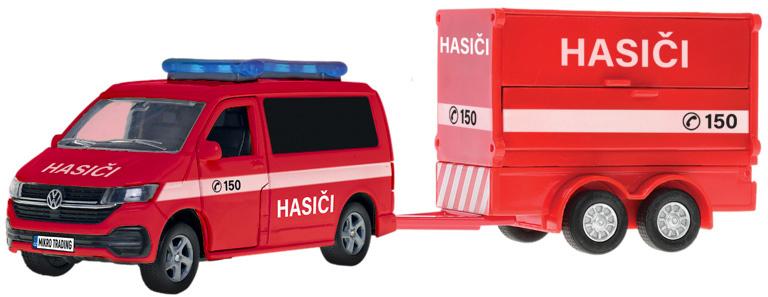 Auto požární VW hasiči zpětný chod set s vlečkou a doplňky český design CZ