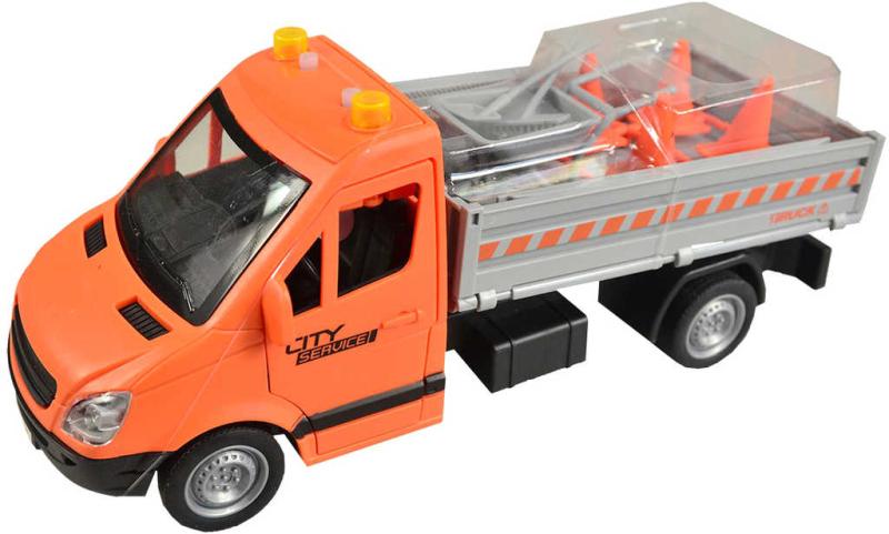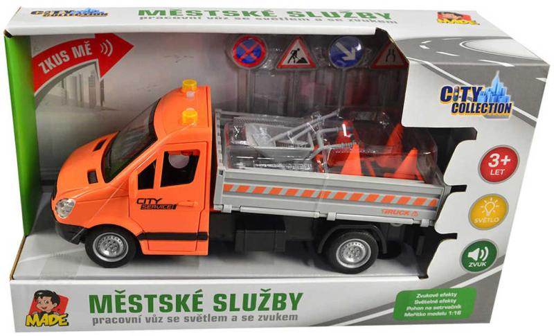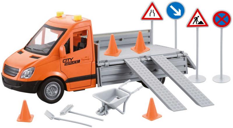 Obsah balení: servisní vozidlo, dopravní značení, pracovní nástroje, kolečka