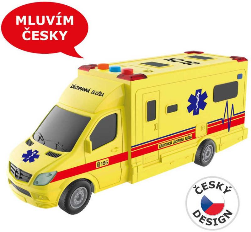 Auto sanitka žltá na zotrvačník 19cm ambulance na batérie Svetlo Zvuk CZ