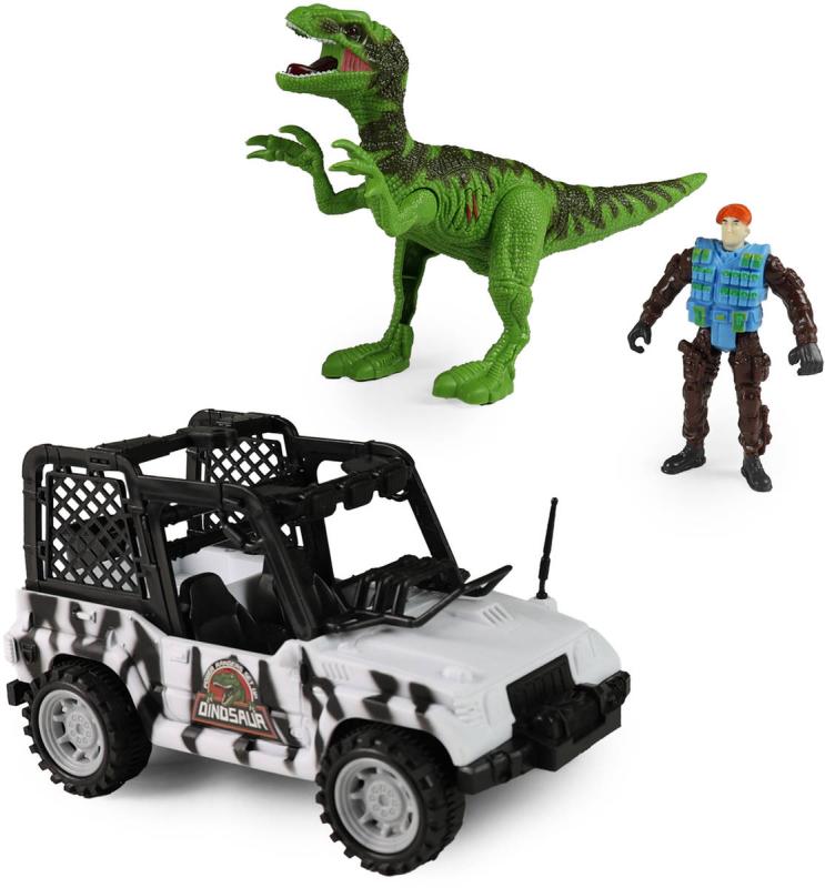 Obsah balení: auto jeep, postavička voják, dinosaurus