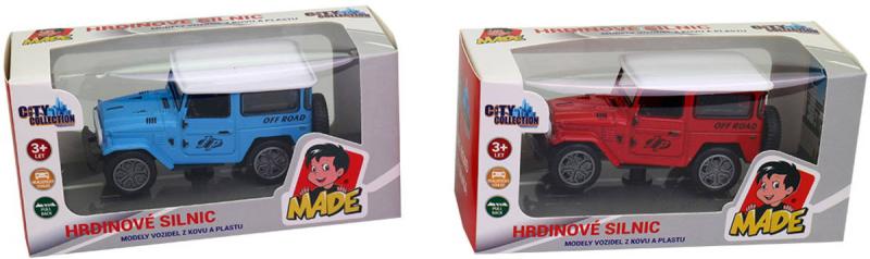 Terénní automobil džíp, model z kovu a plastu, s pohonem na zpětné natažení, autíčko off-road z kolekce "Hrdinové silnic". 4 barevné varianty.Dětská autíčka, to jsou hračky, které potěší malé i velké. Modely aut zajisté potěší nejen malé děti, ale i dospělé. Vždyť koho by krásný model auta nefascinoval?