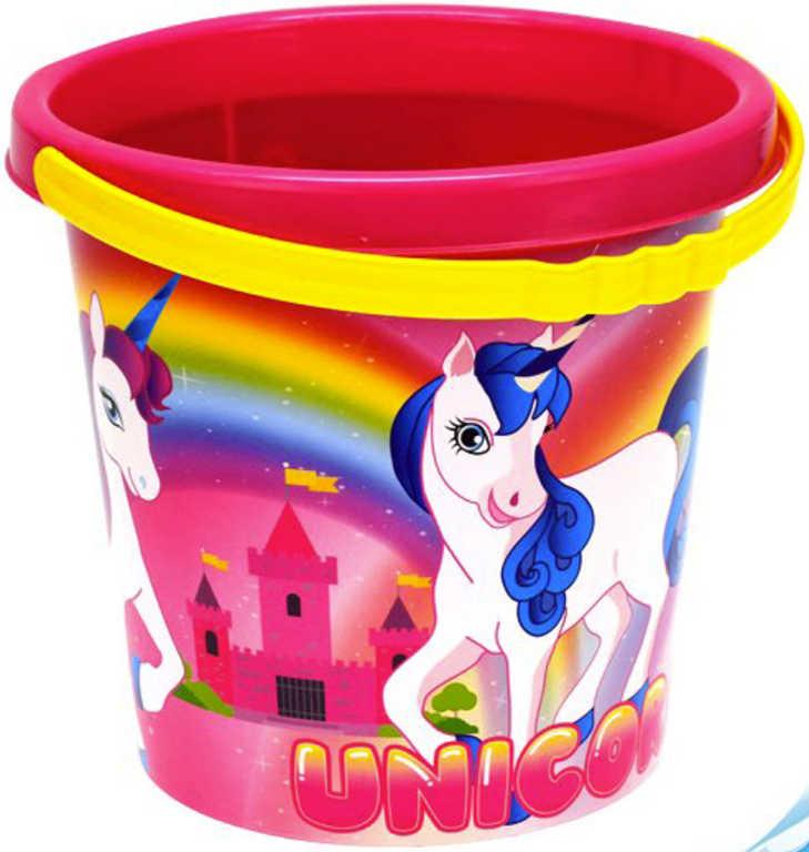 Baby kbelík na písek jednorožec 17cm holčičí růžový s obrázkem Unicorn