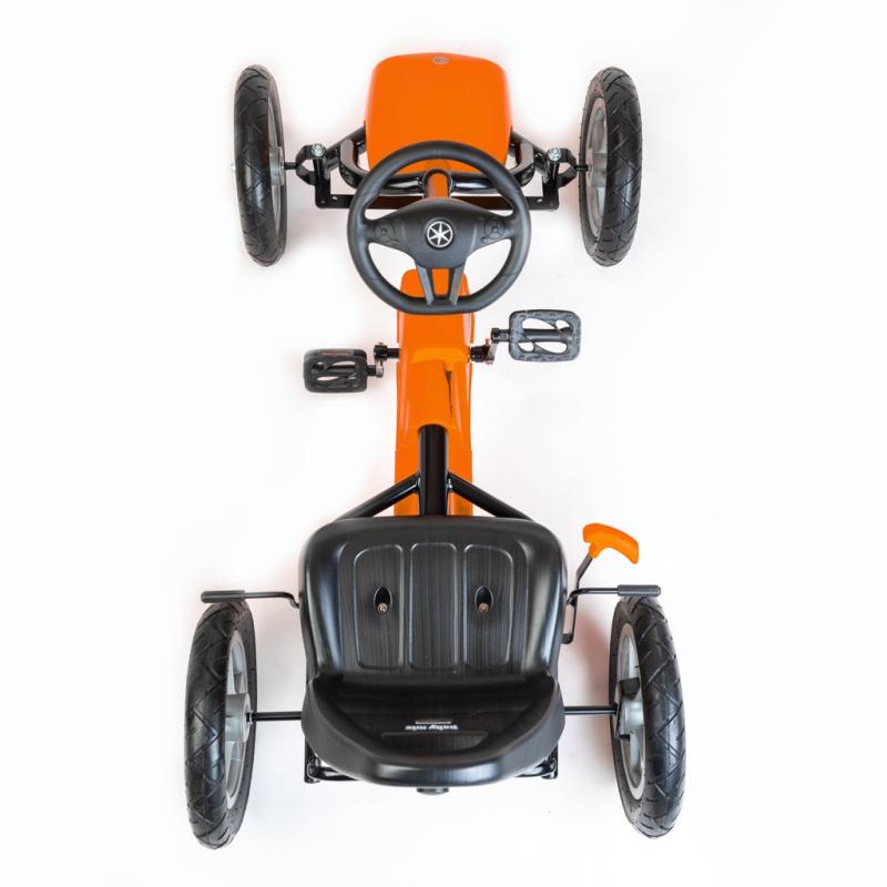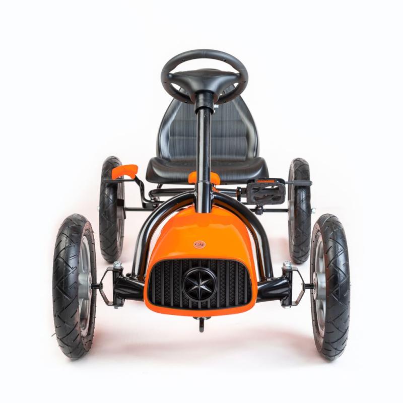 Velké nafukovací pneumatiky zajistí komfort a pohodlí při jízdě na jakémkoli povrchu. Motokára má zabudovaný řetězový pohon s možností odpojení pohonu - funkce volnoběžky a ruční brzdu na zadní nápravě.