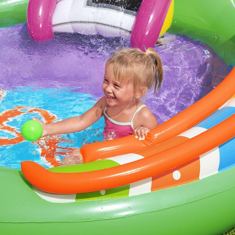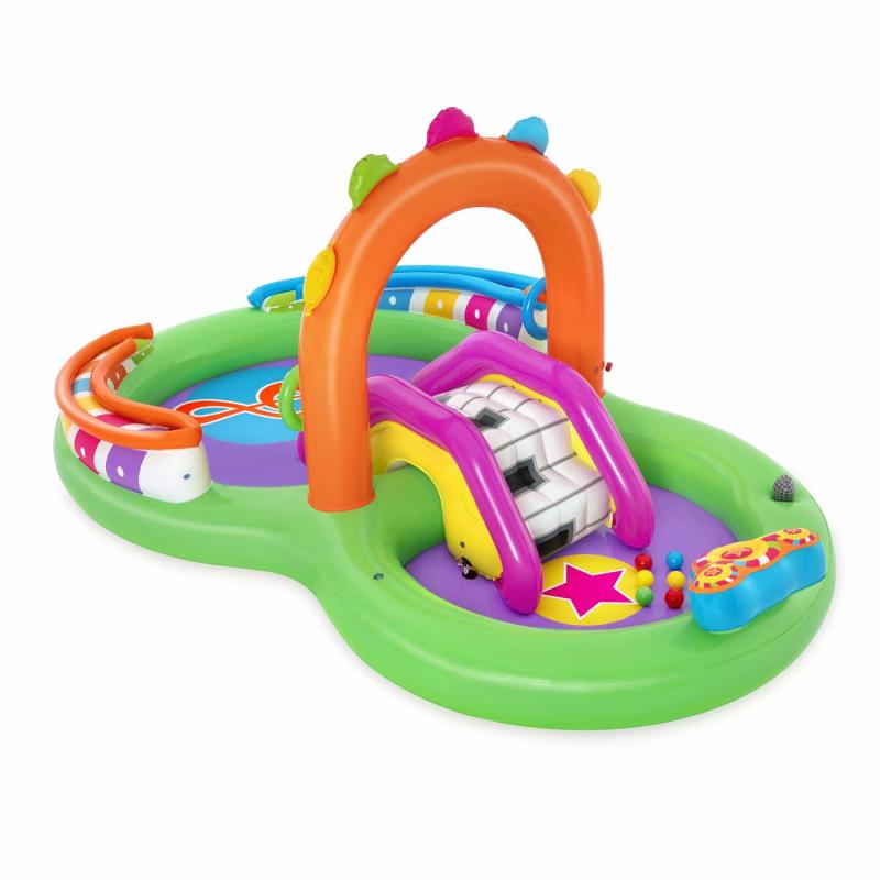 • Vodné detské centrum s motívom hudby zabezpečí deťom osvieženie v letných horúcich dňoch a zároveň ich učí jemnej motorike. Detský nafukovací bazénik do záhrady môžete využiť aj ako suché hracie centrum do obývačky či do izbičky.