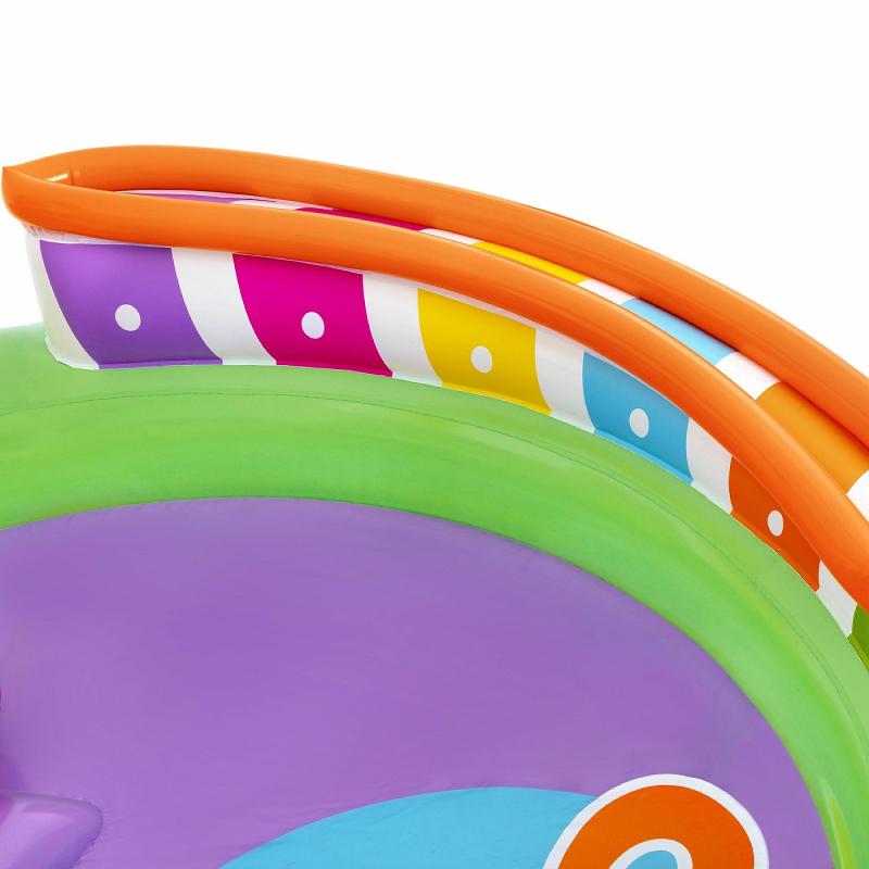 Nafukovacia šmýkačka, dva bazéniky, nafukovací mikrofón a sprcha v DISCOLANDE. To všetko malým deťom ponúka toto hracie vodné centrum. Skvelý nafukovací bazénik vhodný pre deti od 2 rokov s maximálnou nosnosťou 45 kg.• Vodné detské centrum s motívom hudby zabezpečí deťom osvieženie v letných horúcich dňoch a zároveň ich učí jemnej motorike. Detský nafukovací bazénik do záhrady môžete využiť aj ako suché hracie centrum do obývačky či do izbičky.