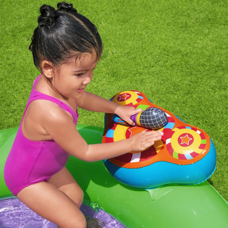• Vaše deti si tento hudobný záhradný bazénik zamilujú. Môžu si spievať s nafukovacím mikrofónom.