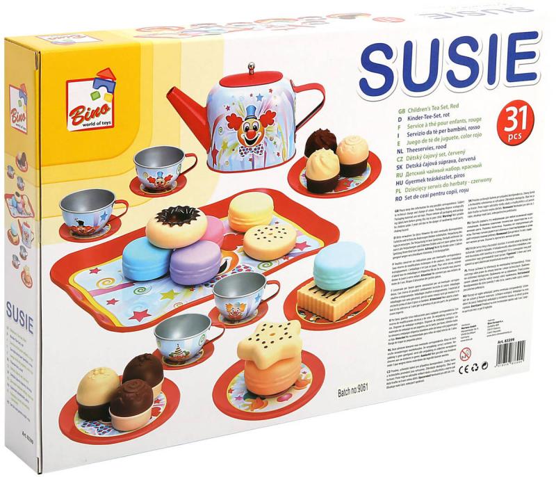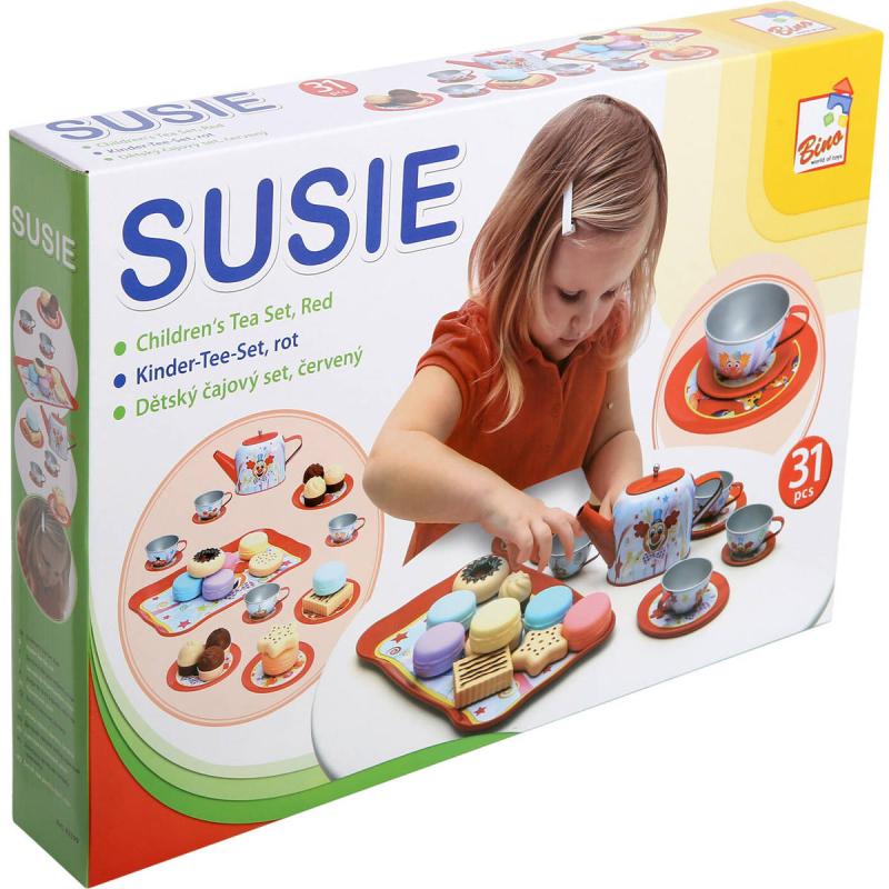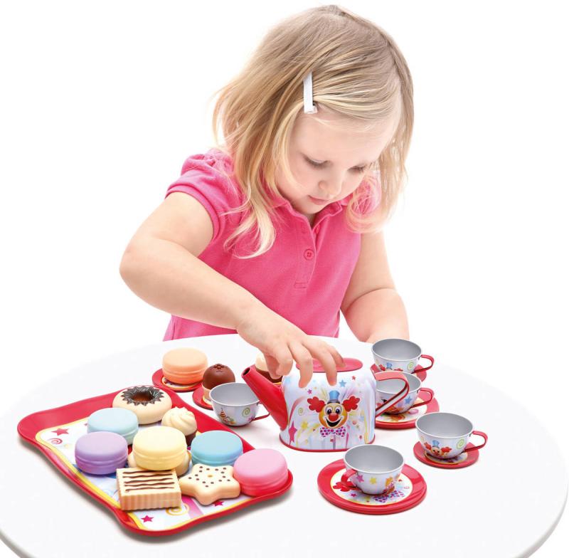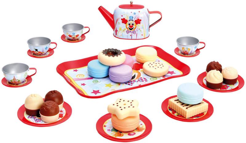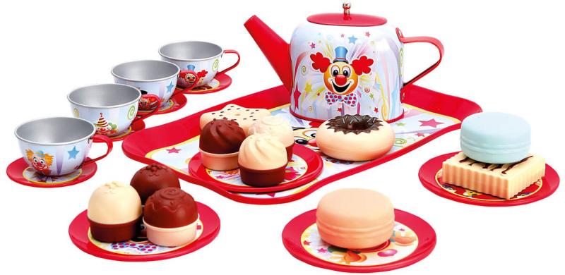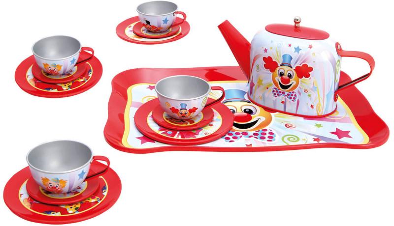 Bino Čajový servis s klaunem dětské nádobíčko kovové se sladkostmi v krabici