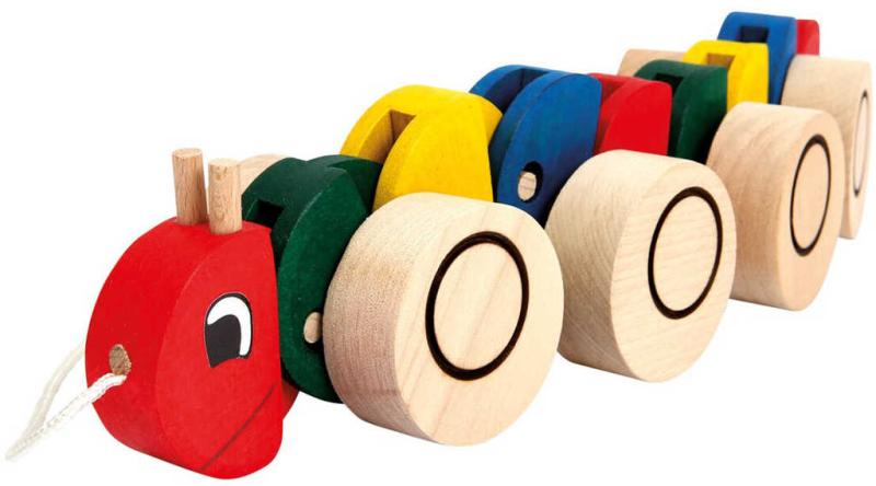 Tahací dřevěnou hračku, v podobě roztomilé housenky, může mít vaše dítě pořád s sebou. Snadno na ni přivážete šňůrku a housenka se otáčením koleček celá rozpohybuje. Legrační pohyblivá hračka, kterou si oblíbí i ti nejmenší.