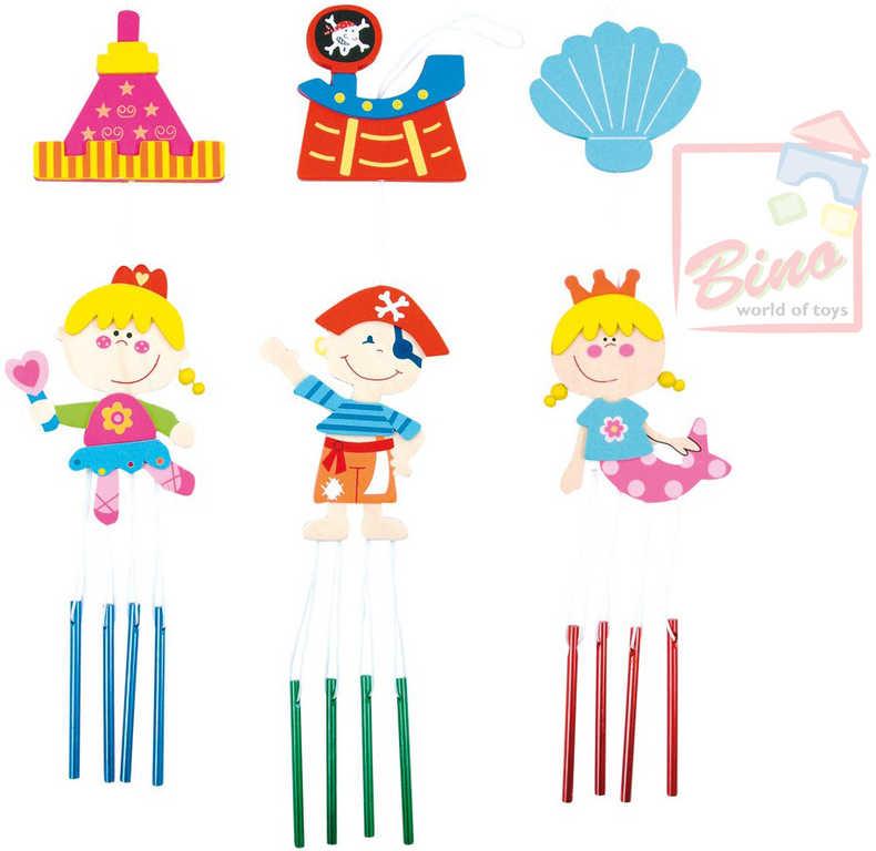 Dřevěná zvonkohra v podobě roztomilé postavičky má na konci čtyři válečky, které při pohybu větrem nebo dotekem o sebe cinkají. Hračka je hezkou dekorací každého pokoje.