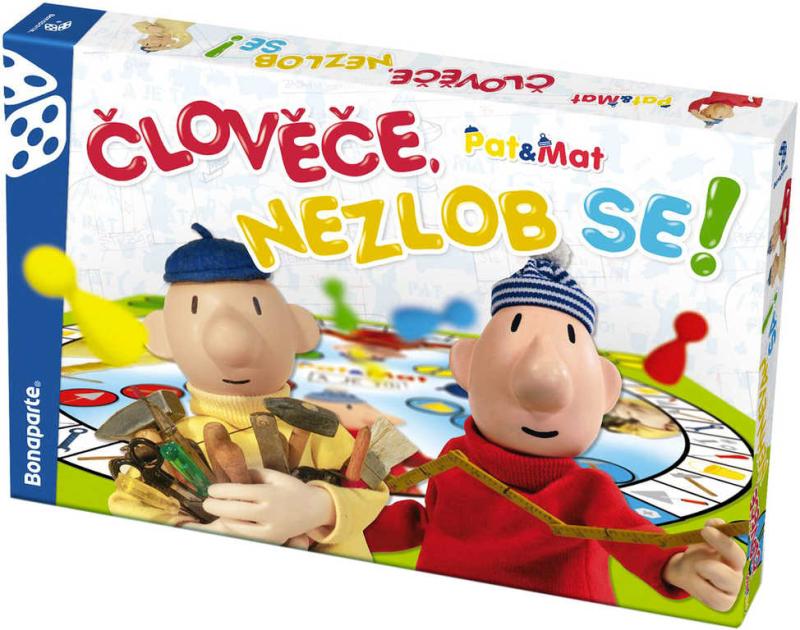 Člověče, nezlob se PAT A MAT je společenská hra po nejmenší děti, která však zabaví i rodiče. Pat a Mat přinášejí dvě varianty klasické hry. Pro nejmenší děti obrázkovou variantu, v níž hrací kostka místo bodů obsahuje obrázky nářadí. A pro ty, co již umí čísla, nabízí variantu klasickou. Obrázkové Člověče, nezlob se PAT a MAT mohou hrát děti již od tří let. Děti si při hře osvojí také schopnost soustředit se a rovněž i umění vyrovnat se s prohrou.