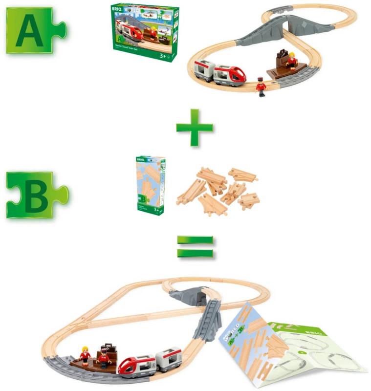 Sada obsahuje výběr dřevěných dílů, které lze použít k vytvoření dalších pěti typů uspořádání tratí se 36079 Startovacím osobním vlakem (prodává se samostatně). Kombinujte různé délky přímých kolejnic, výhybek a spojovacích kolejnic.
