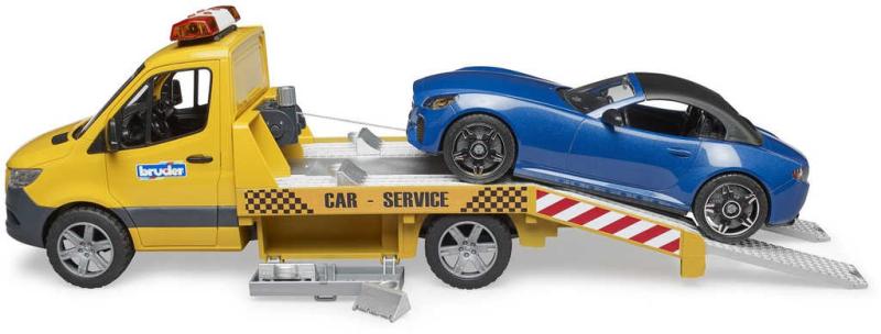 BRUDER 02675Nový Mercedes Benz Sprinter odtahová služba s autem Bruder 02675 využije každý motorista v Bruder světě. Odtahovka má výsuvné nájezdy umožňující najetí aut na plošinu. Odtahový vůz Bruder 2675 je