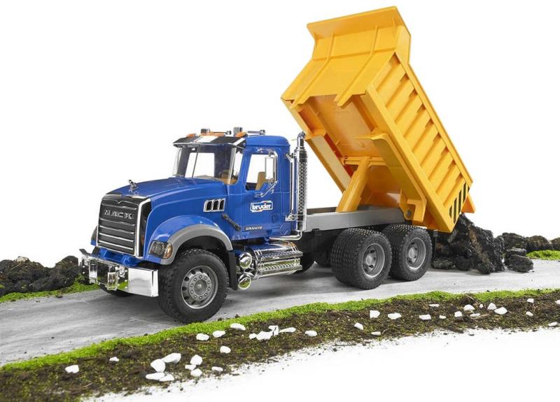 BRUDER 02815 - Nákladní auto MACK Granite Dump Truck.Tento model nákladního auta patří k našim nejoblíbenějším modelům. Vaše děti si s tímto vozem vyhrají především díky sklápěcí korbě, která je snadno ovladatelná hydraulikou. Modelu nechybí ani moderní