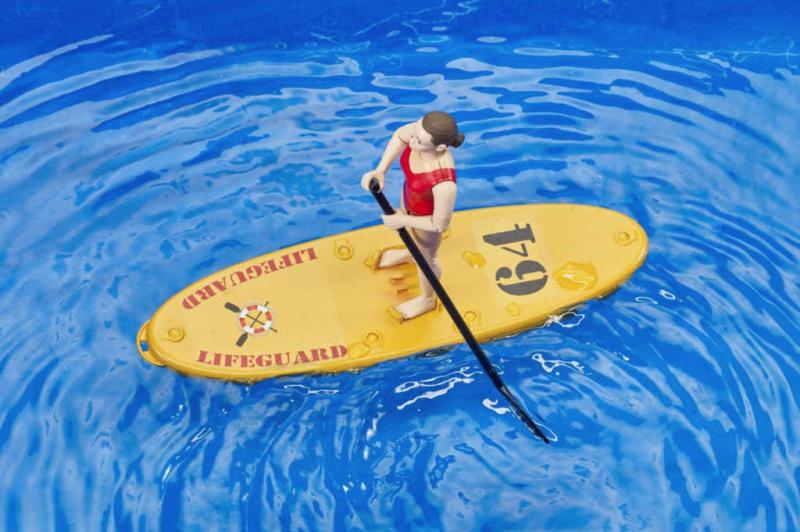 Obsah balení: figurka plavčík, plovák, pádlo, paddleboard