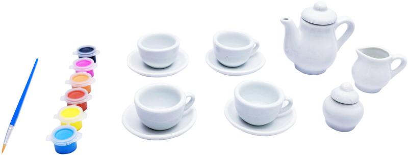 Čajový dětský servis kreativní set s barvičkami malování na porcelán