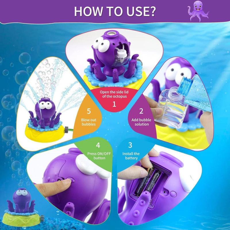 Chobotnice stříkací fontána / bublifuk 2v1 stříká vodu na baterie 2 barvy