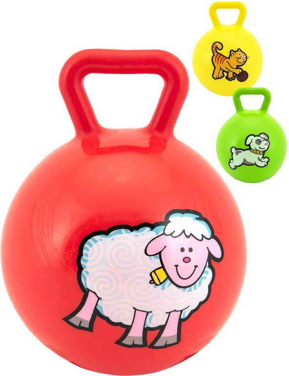Chrastítko baby míč s úchytem 14cm se zvířátkem 3 druhy pro miminko guma