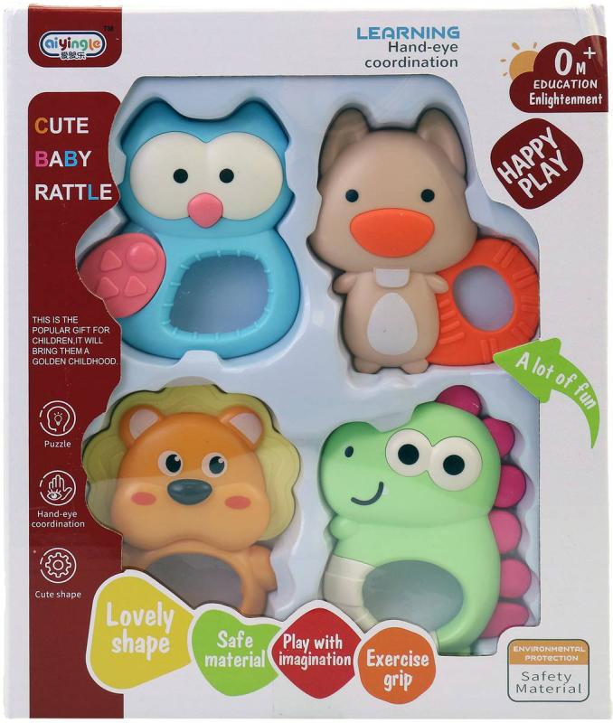 Chrastítko plastové baby zvířátko set 4ks pro miminko v krabici