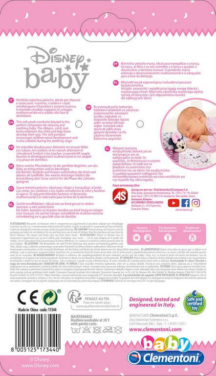 Tento hebký plyšový mazlíček v licenci Disney Minnie Mouse bude skvělým parťákem miminka při usínání. Na jeho konci se nachází také kousátko, které pomůže při prodírání prvních zoubků. Různorodé materiály,