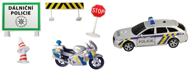 Dálniční policie ČR set 2 vozidla s dopravním značením na baterie Světlo Zvuk kov