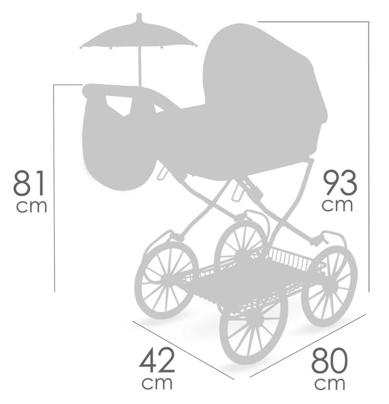 • Rozměry kočárku: 80 × 42 × 93 cm (celková výška kočárku)